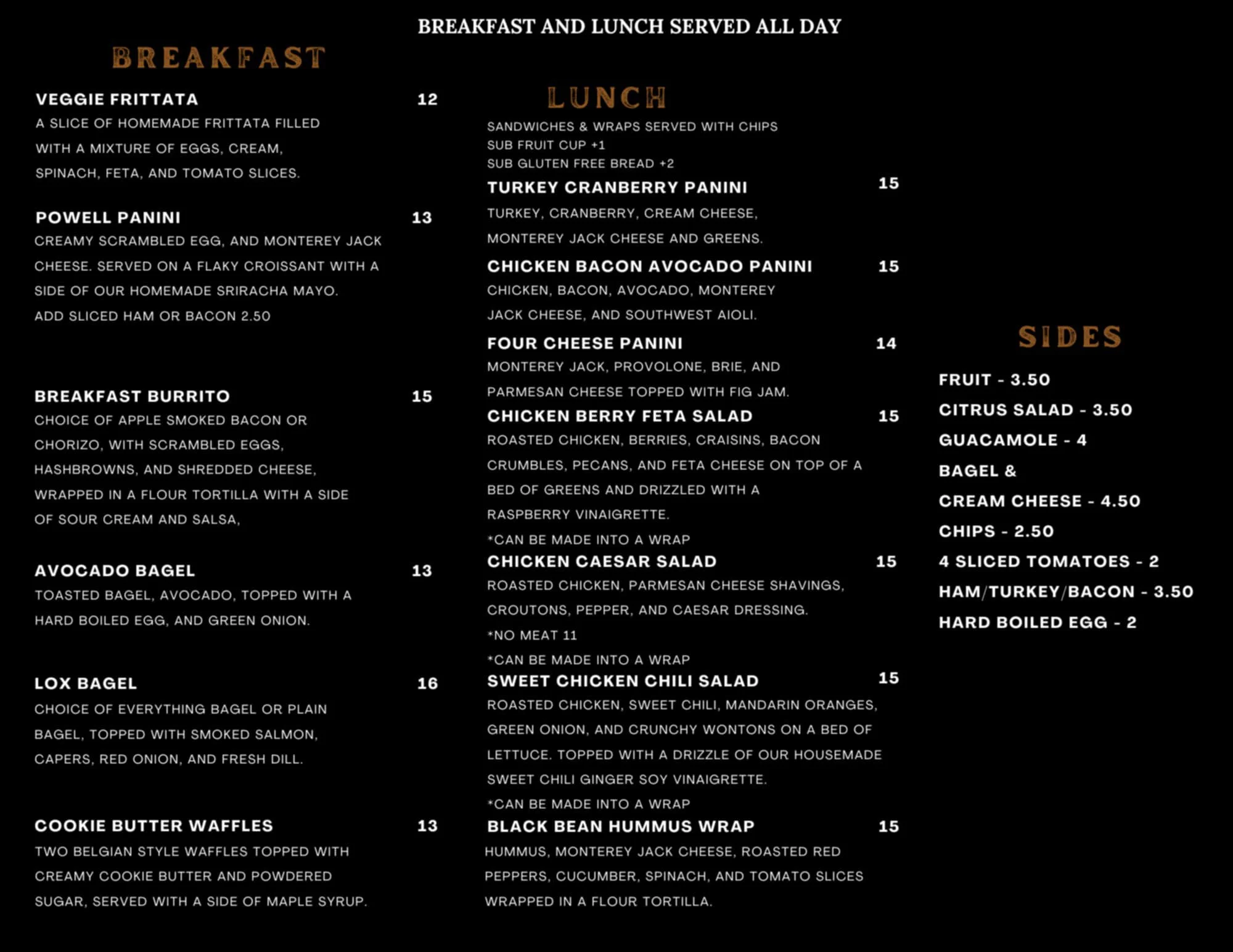 BREAKFAST AND LUNCH ITEMS AVAILABLE ALL DAY 6AM-2PM
